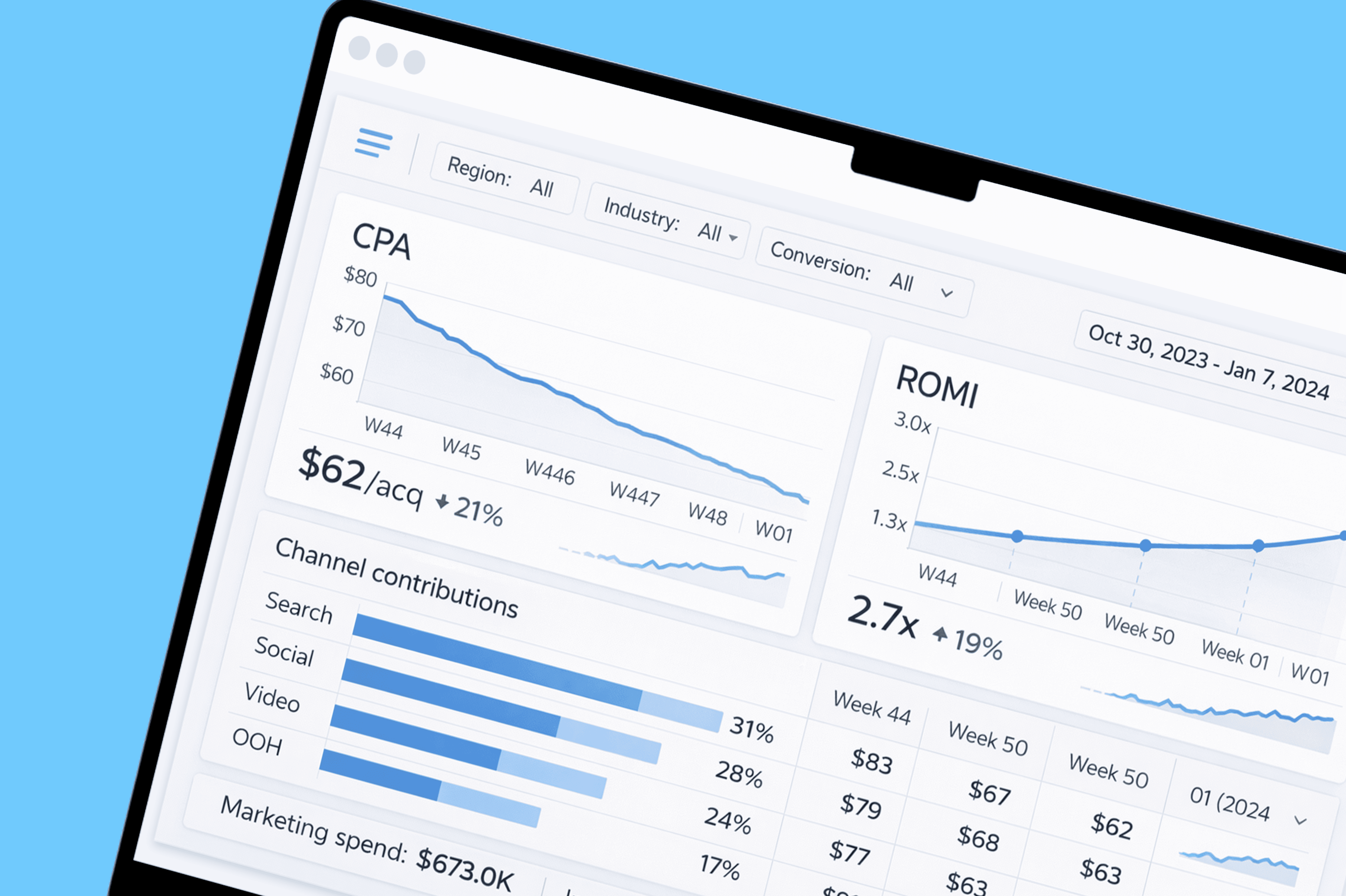 «Точка перегиба» для каждого канала — бюджет, после которого эффективность падает. Вы будете знать, где остановить масштабирование и куда перенаправить средства.